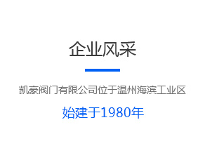凱豪閥門有限公司位于溫州海濱工業(yè)區(qū),企業(yè)占地面積20000平方米。初建于 1985 年,注冊資金5008萬;工廠主要生產(chǎn) ANSL、JIS、DIN 和 GB 標(biāo)準(zhǔn)的閘閥、截止閥、止回閥、球閥、蝶閥、 旋塞閥,疏水閥,過濾器等產(chǎn)品。并能按照客戶提供的要求定制各...